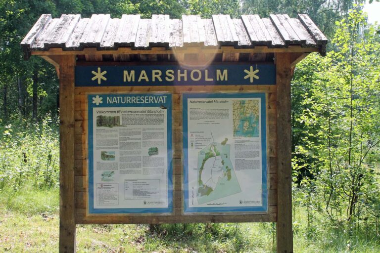 Marsholm  NaturreservatPå Marsholm naturreservat finns en stor variation av olika naturtyper. På huvudön Marsholm domineras skogen av gran medan kärren och strandskogarna, som uppkommit efter sjösänkningen på 1860-talet, domineras av lövträd. Marsholms blandskogar har en ovanligt stor andel död ved och där trivs sällsynta insekter och olika hackspettsarter.