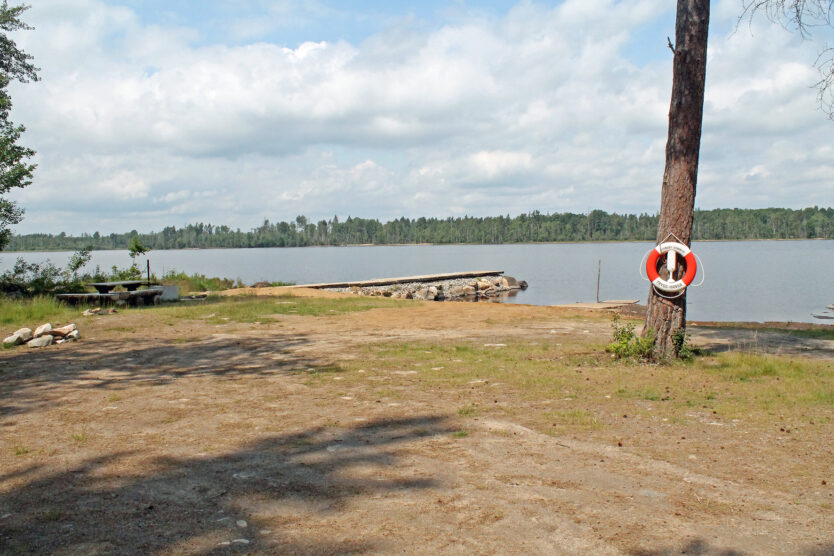 En skön rastplats vid Möckelns strand, med båtiläggningsplats och stenpir på Marsholm