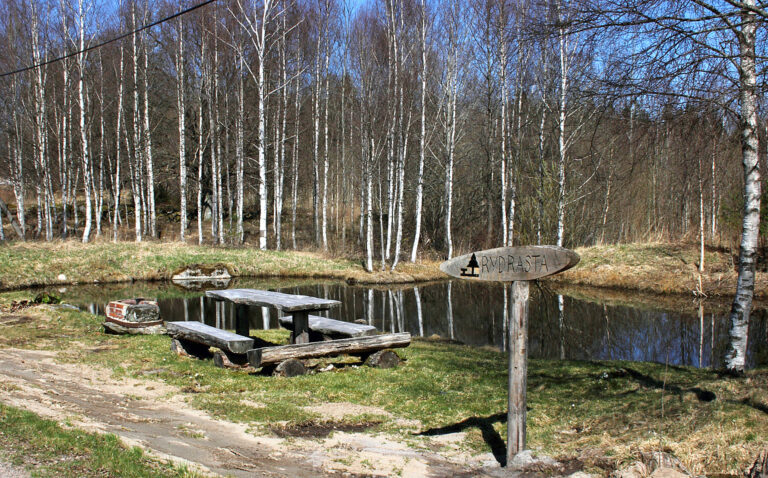 Rydrasta är en enklare rastplats med picknickbord och grillplats vid damm.